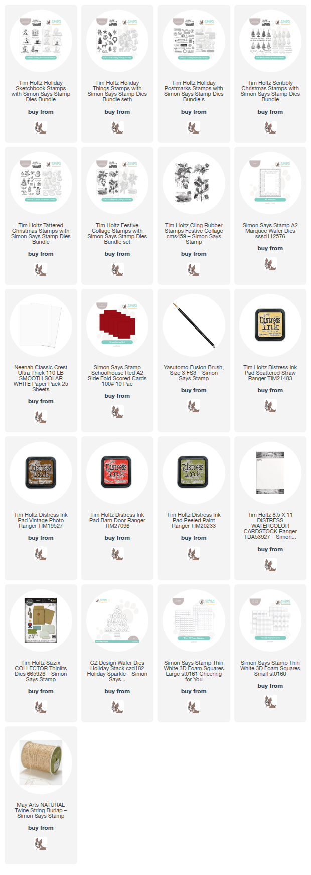 I hope you enjoyed the project I have shared today using the new coordinating dies for Tim's Holiday stamps and got some inspiration. I have listed and linked the supplies I used for your convenience.