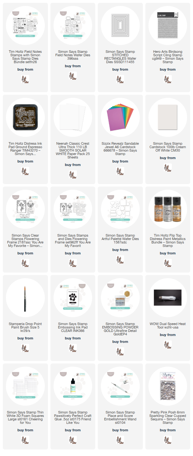 I hope you enjoyed the project I created with this new dies for Tim Holtz amazing stamps. Having the dies opens up so many possibilities! I have listed the items I used for this project. I will have more inspiration to come! Thanks for stopping by!