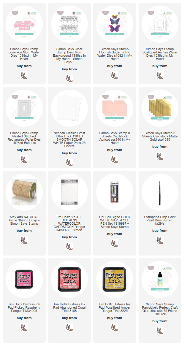 Hello crafty friends! Today I am sharing a project using a few items from the Simon Says Stamp In My Heart release to create a beautiful Mother's Day project. This is a colorful card that features the new Love You, Mom wafer die, Best Mom Background stamp, Flourish Butterfly Trio dies, and Apricot cardstock.